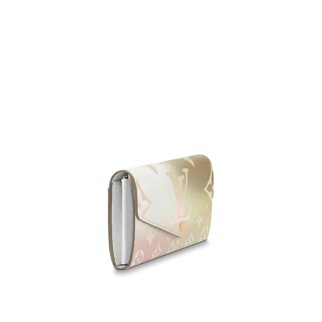 One of the “Spring in the City” capsule collections, “Portefeuille Sala”. It is made of a monogrammed canvas printed with gradients inspired by the twilight sky. The classic wallet with an emvelop flap is adorned with engraved gold-colored snaps. With zippered coin pockets and multiple card slots, the interior is easy to organize.